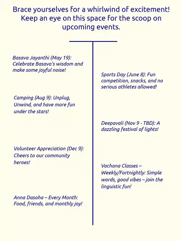 Join us for a special celebration of Basava Jayanthi, the birthday of Basavanna, a great philosopher and reformer, at the Shiva-Vishnu Temple (Akella Hall) in Livermore. Let’s gather to honor Basavanna’s teachings of kindness and equality and enjoy cultural performances and community spirit together. It will be a wonderful opportunity to connect with others, learn about Basavanna’s legacy, and celebrate our shared values of love and harmony. Don’t miss out on this enriching experience! See you there! Dummy Content Warm regards, 2025 Committee🎉